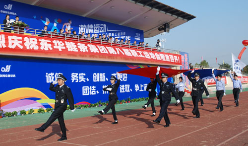 開幕式上,隨著高亢激昂的運動員進行曲響起,國旗隊、廠旗隊、舞蹈隊、東華黨群服務驛站代表分工代表等共19支方隊有序入場。各代表隊員工精神飽滿,口號響亮,步伐整齊,展示出東華員工朝氣蓬勃的精神風貌。