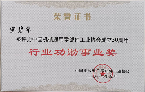 會上,中國機械通用零部件工業(yè)協(xié)會鏈傳動分會理事長,東華集團董事長宣碧華獲中國機械通用零部件工業(yè)協(xié)會成立30周年“行業(yè)功勛事業(yè)獎”。