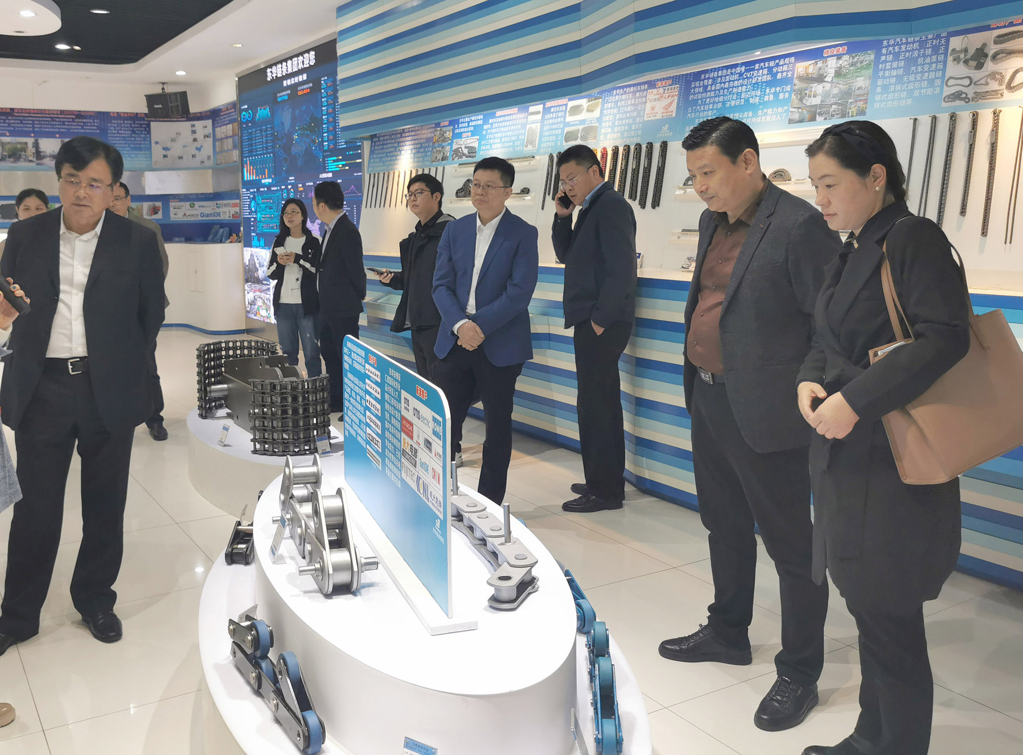 胡主任一行聽取介紹后,對東華的行業(yè)地位、綜合實力、四全兩化建設(shè)取得的成就表示贊許。他說,東華鏈條不愧是居國內(nèi)鏈傳動行業(yè)第一,世界鏈傳動行業(yè)前二位的企業(yè),生產(chǎn)三萬多種鏈條,十萬多個規(guī)格,廣泛應(yīng)用于社會各行各業(yè)。安徽省有許多大型的機(jī)械企業(yè),相信你們都有配套,希望你們多到安徽參觀交流,與我們本土企業(yè)有更多的合作。