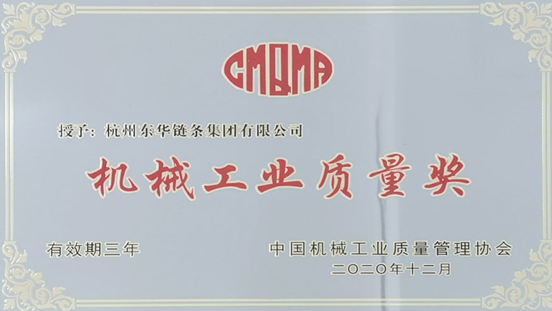 東華鏈條集團榮獲中國“機械工業質量獎”獎