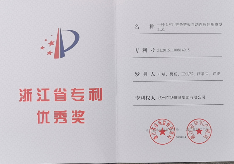 東華鏈條集團“一種CVT鏈條鏈板自動連續(xù)沖壓成型工藝”發(fā)明專利榮獲浙江省專利優(yōu)秀獎。本工藝投入使用后,在不增加人工、設備情況下,提升產(chǎn)品質(zhì)量,同時可省去傳統(tǒng)去毛刺工序,節(jié)約加工時間,提高效率,縮短產(chǎn)品加工流程,提高產(chǎn)品質(zhì)量的穩(wěn)定性。