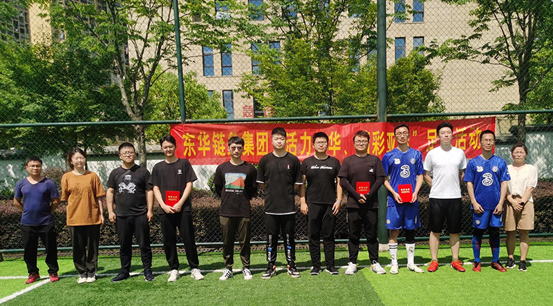 7月1日下午,由農機鏈分工會承辦的“活力東華,精彩亞運”系列活動之足球比賽圓滿落幕,來自各分工會的 12支代表隊參賽。經過多輪激烈角逐,輸送鏈分工會、汽車鏈分工會、扶梯工程鏈分工會獲前三名。集團副總經理張秉忠頒獎并合影留念。