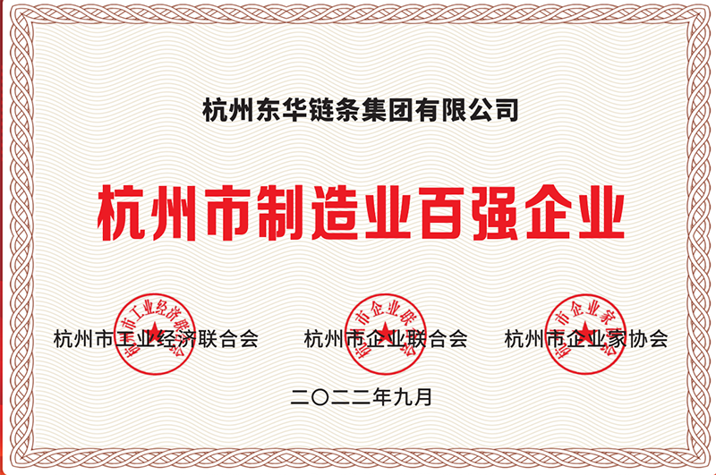 東華鏈條集團再次躋身杭州市制造業百強企業榜