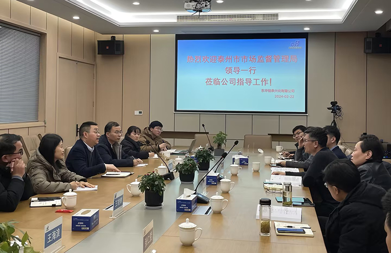 2月22日,泰州市場監督管理局孔局長、興化市場監督管理局卞局長一行到興化公司調研。興化公司總經理楊小勇、各事業部負責人以及質量部相關人員陪同調研。