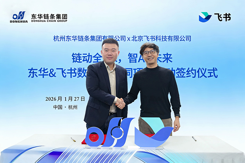 1月27日,東華鏈條& 飛書數字化協同項目在東華總部舉行啟動儀式。東華鏈條集團董事長宣成、高管團隊、信息化團隊與飛書華東&華中區總經理姚翔等共同出席了本次儀式。