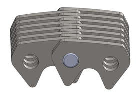 ● 按結構形式主要有:圓銷式齒形鏈、滾銷式齒形鏈。 ● 按嚙合方式主要有:內嚙合、外嚙合、內外復合嚙合齒形鏈。 ● 具備鏈傳動系統正逆向開發、試驗能力,擁有自主產權。