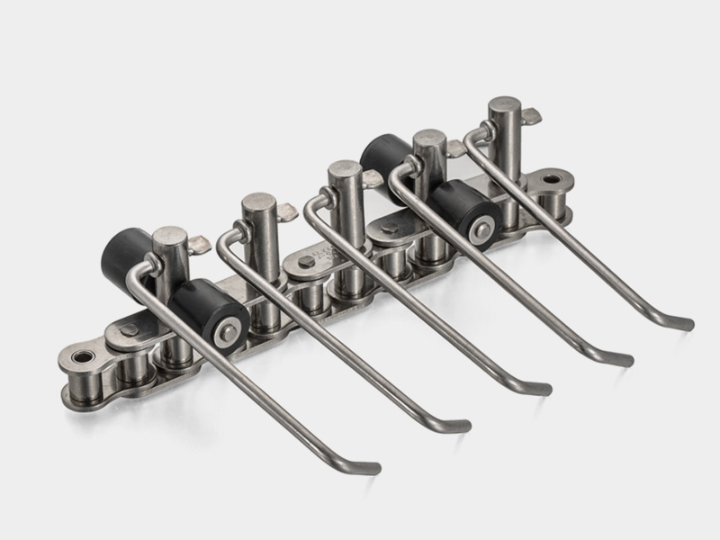 ● 不銹鋼香腸生產線輸送鏈條,可以完成香腸的自動輸送、烘烤。 ● 采用優質的316不銹鋼材料、先進的加工工藝,產品具有耐腐蝕性、耐高溫、鏈長精度高等特點,適用于長距離平穩輸送。